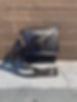 100% Genuine Leather Bucket Handbag, Asymmetrical, Navy Blue
